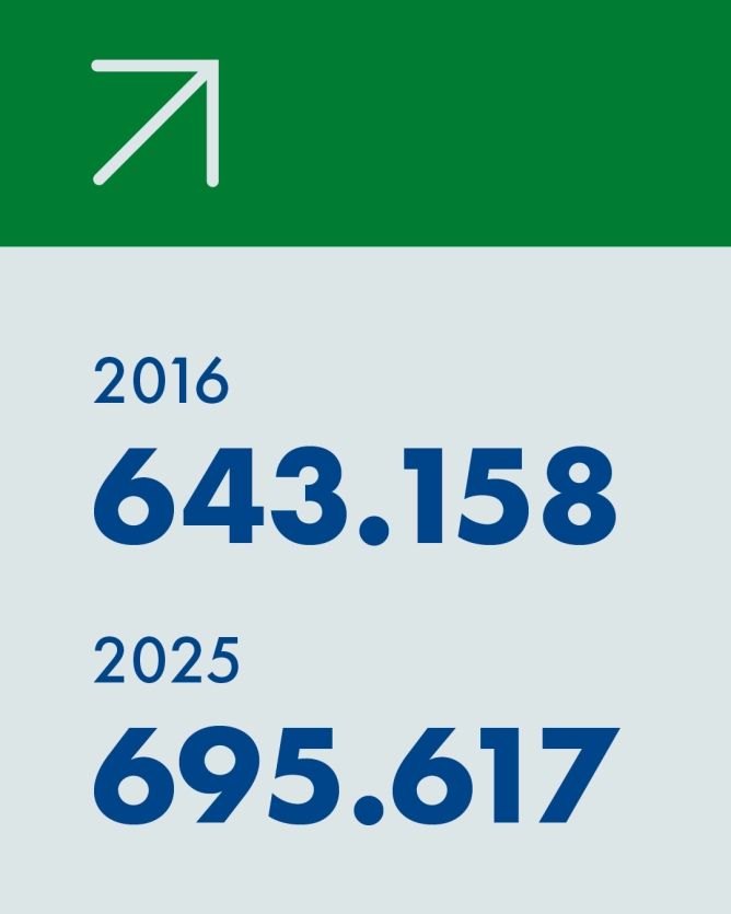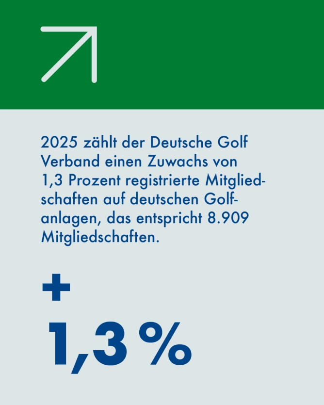 Zum Stichtag am 30. September 2025 zählte der Deutsche Golf Verband 695.617 registrierte Mitgliedschaften beziehungsweise Spielrechte in seinen angeschlossenen Golfclubs, -anlagen und in der VcG. Nie gab es in Deutschland mehr Golferinnen und Golfer. Das ist gegenüber dem Vorjahr ein Zuwachs von 1,3 % oder fast 9.000 Golferinnen und Golfern.