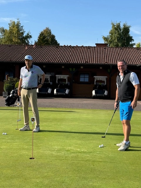Am regnerischen, zweiten Tag drehten die Gäste in der Führungsgruppe, Steffens und Prokop, richtig auf und ließen fast jeden Putt fallen. Beide lieferten sich ein Kopf an Kopf Rennen von Bahn zu Bahn und beendeten die Finalrunde mit jeweils 36 Nettopunkten.