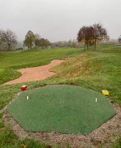 Auch in diesem Jahr wurden die Winterabschläge mit Driving Range Matten ausgestattet und der Untergrund begradigt. Für ein besseres Spiel hat der Golfclub für die Abschläge auf den Matten „Teeholder“ angeschafft, sodass die GolferInnen ihre eigenen Tees in unterschiedliche Höhe stecken können.