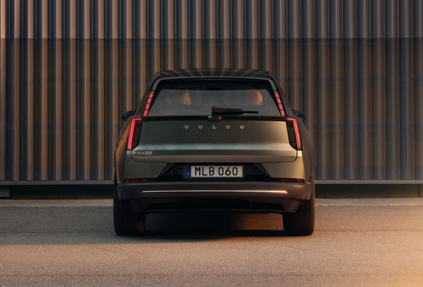 Die Front ist geschlossen, das Tagfahrlicht in „Thors Hammer“-Grafik bleibt beim E-SUV die obligatorische Lichtsignatur. Matrix-LED-Scheinwerfer gibt es serienmäßig, gegen Aufpreis können diese gegen Pixel-LED-Technik getauscht werden. Dann löst das Licht mit 25.600 Einzel-LED auf, was ein besonders effizientes Ausschneiden anderer Verkehrsteilnehmenden ermöglichen und so Blendungen reduzieren soll. Am Heck setzt Volvo auf eine scharf abgegrenzte Lichtsignatur, technisch und passend zum aufgeräumten Design.