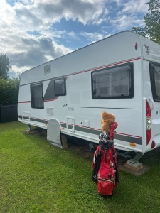 „Für einen Tagesaufenthalt dürfen Golfgäste mit Camper den Parkplatz vor dem Clubhaus gern nutzen und sind herzlich willkommen. Für alle, die mit ihrem Wohnmobil über Nacht bleiben möchten, gibt es den Knaus Campingpark praktisch auf dem Golfplatz zwischen unserem Ost- und Westkurs. Hier findet man alles, was das Camperherz begehrt vom einfachen Außenstellplatz vor der Schranke über Comfortstellplätze für Reisemobile und Caravans aller Marken bis hin zu Ferienhäuschen in denen auch Gäste ohne Wohnmobil unterkommen können.“