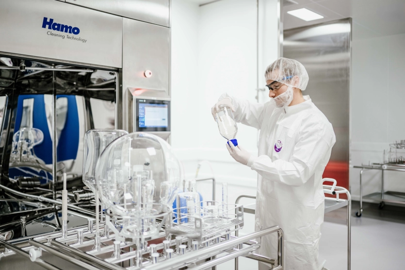 Insgesamt hat sich die Fläche des Werks mehr als verdoppelt und umfasst nun über 8.000 Quadratmeter Produktions-, Labor- und Bürofläche. Die vollständig digitalisierte Anlage ist gemäß dem EU-Leitfaden für die sterile Arzneimittelherstellung (EU-GMP Annex 1) konzipiert und vereint Flexibilität für weiteres Wachstum mit hohen Umweltstandards.